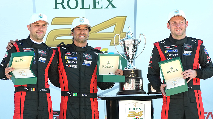 En ese escenario; Roger Penske le pidió a sus pilotos ”quiero la tercera consecutiva” y Felipe Nasr – Julien Andlauer y Laurin Heinrich llevaron al Porsche Nro. 7 a lo más alto del podio con una diferencia mínima de 1.569 segundos luego de 705 vueltas, sobre el Cadillac tripulado por Jack Aitken – Earl Bamber – Frederik Vesti y Connor Zilisch.
